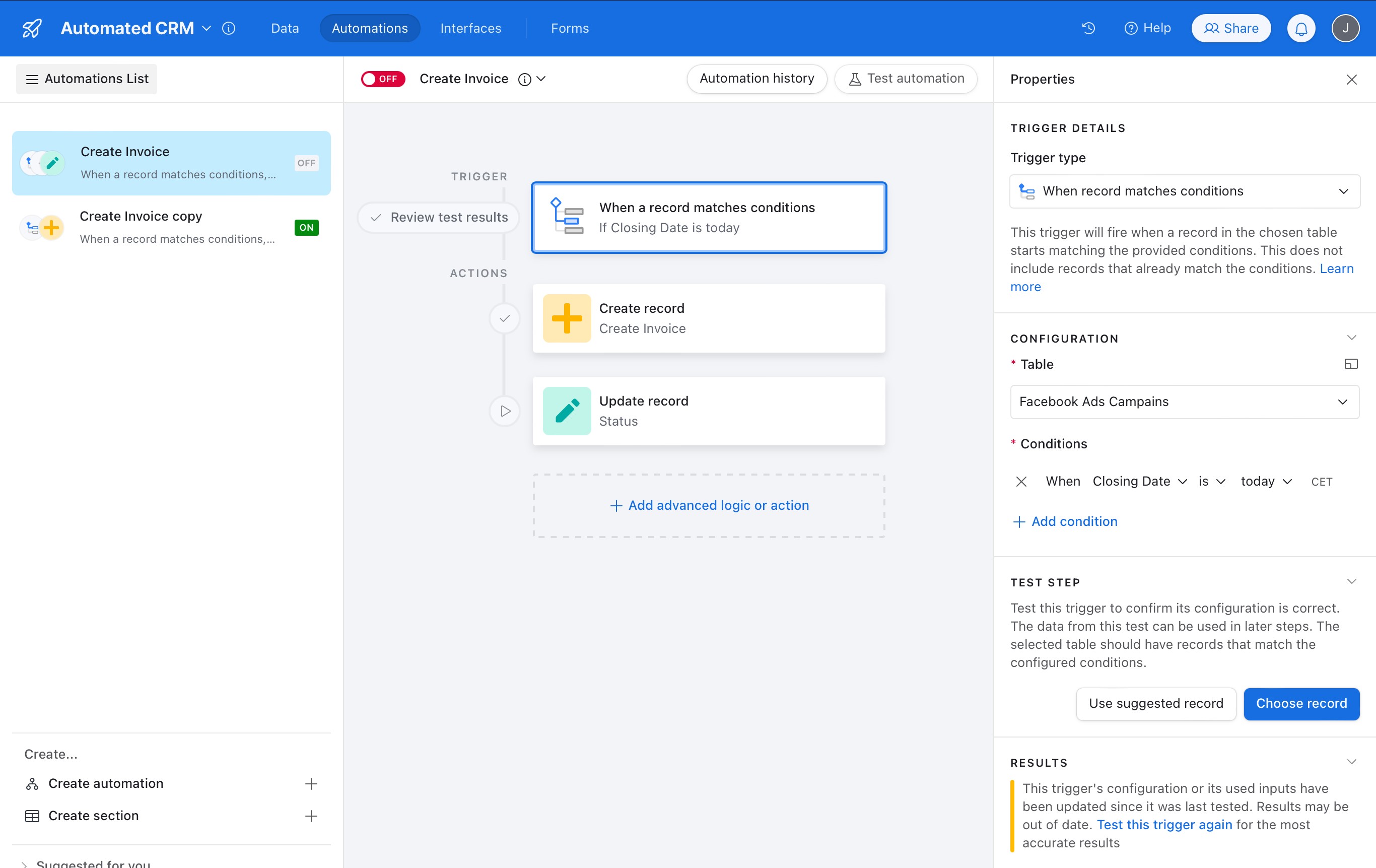 Automatiseer herhalende taken direct in Airtable. Zoals het updaten van informatie nadat er iets belangrijks is gebeurd. Bijvoorbeeld het verbergen van tijdssloten uit een planning nadat deze zijn vergeven. Dit verhoogt de productiviteit en vermindert de kans op menselijke fouten.