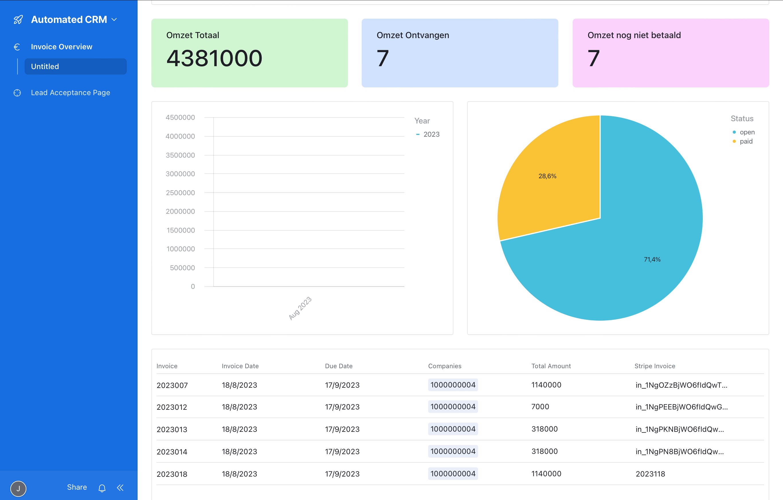 Creëer dashboards die real-time inzichten bieden in belangrijke statistieken voor jouw doelen. Perfect voor het informeren van klanten en het nemen van data-gedreven beslissingen.